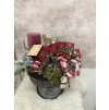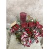 Kouzelná adventní dekorace naaranžovaná na plechové misce s podstavcem, která dodává celku rustikální a zároveň hravý vzhled. Dominantou je dřevěná vánoční mašinka s očíslovanými vagónky 1–4, symbolizující čtyři adventní neděle. U svíčky je doplněk dřevěný koník, pod ozdobnou mašlí se ukrývá roztomilý sněhulák a celé aranžmá krásně dotváří kovové rolničky.