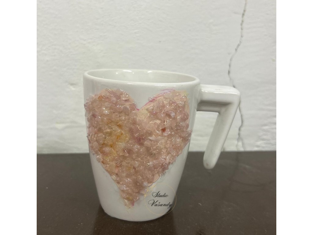Porcelánový hrnek se zlomky minerálů Růženínu