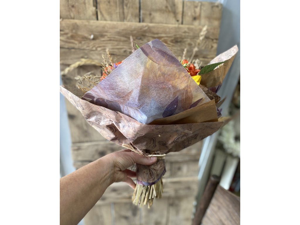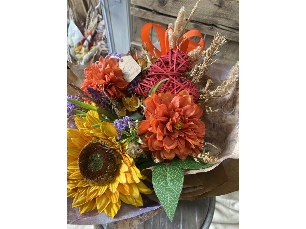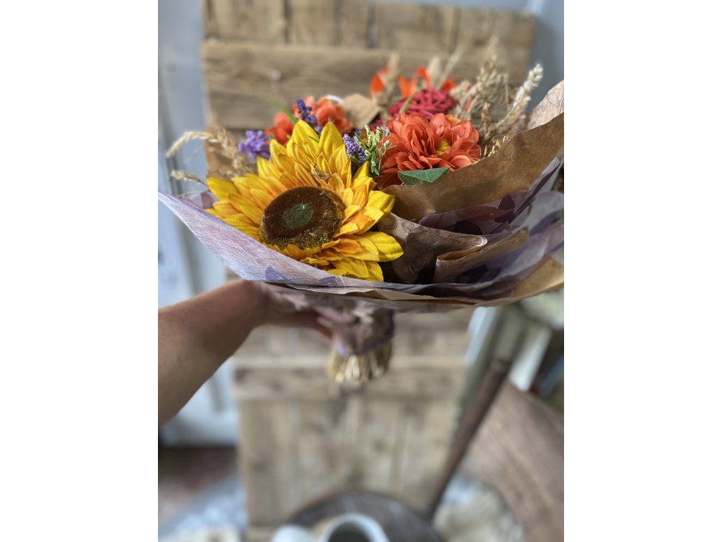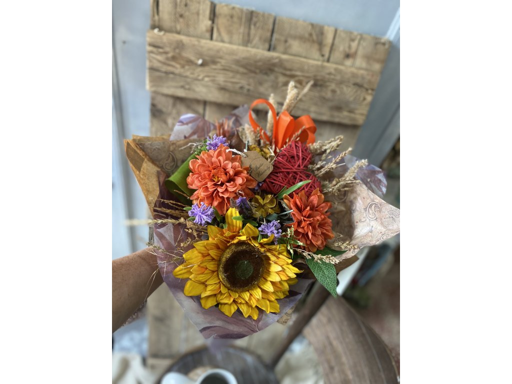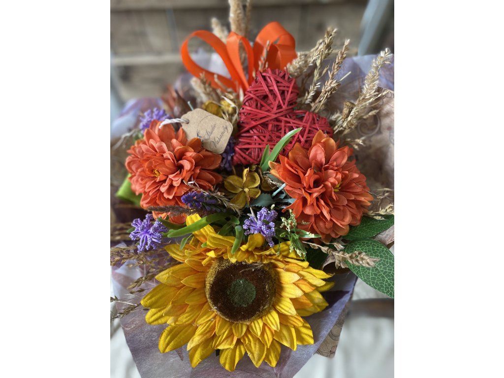 Barevná kytice z umělých květin a radarovým srdíčkem
